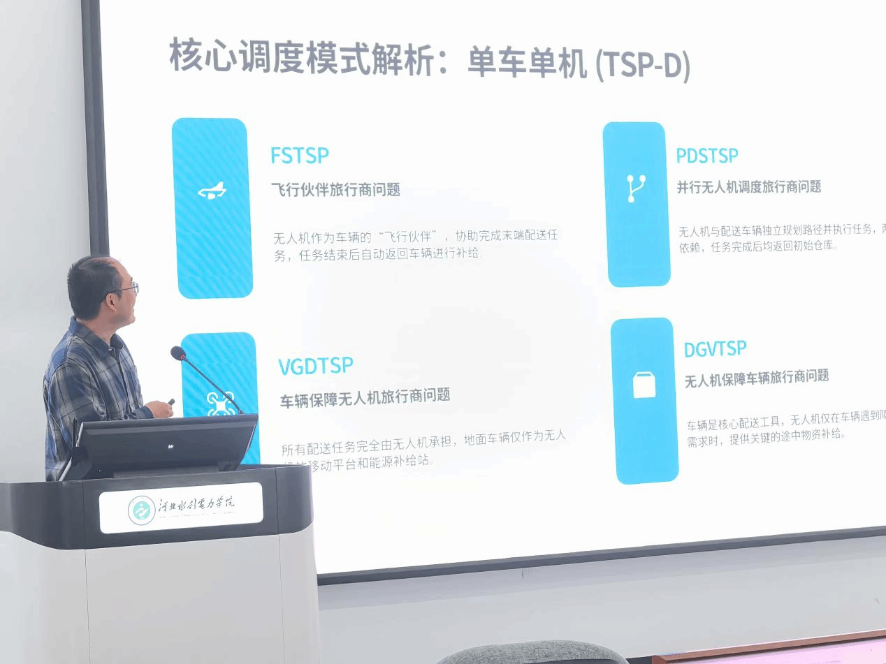 讲座紧密结合行业实践与地方应用场景,详细展示了无人机在物流配送、电力巡检、应急救援、城市交通服务等领域的落地成效,重点分析无人机—卡车联合调度的优化逻辑与工程实现路径,为我校交通运输专业产教融合、科教融汇、人才培养对接区域低空经济主导产业提供了清晰思路与实践方向。