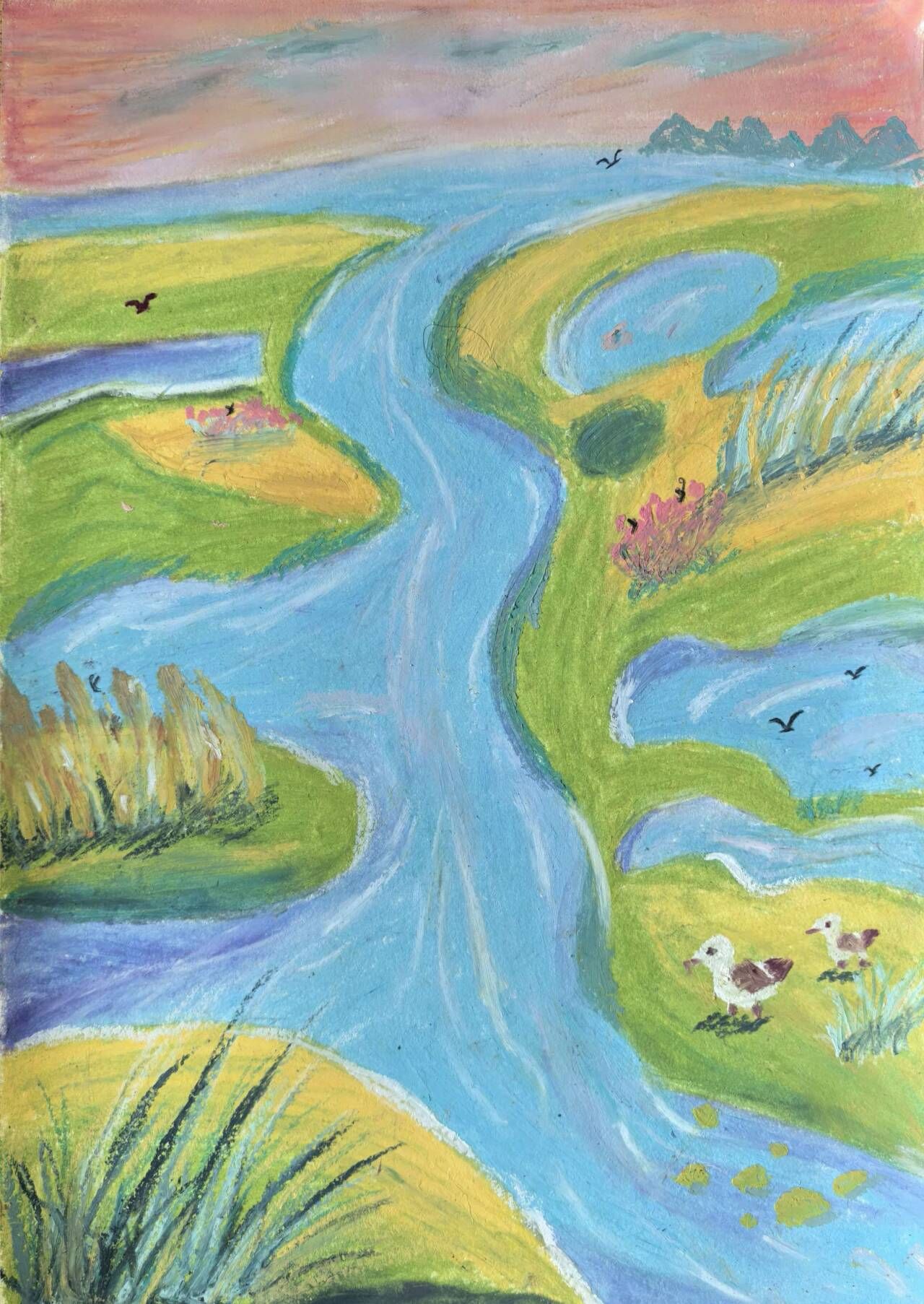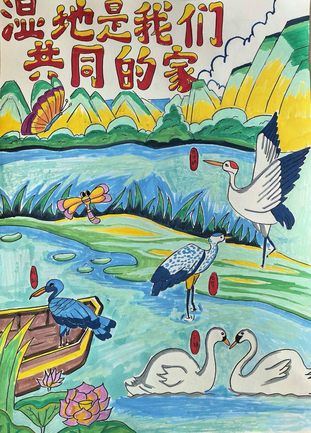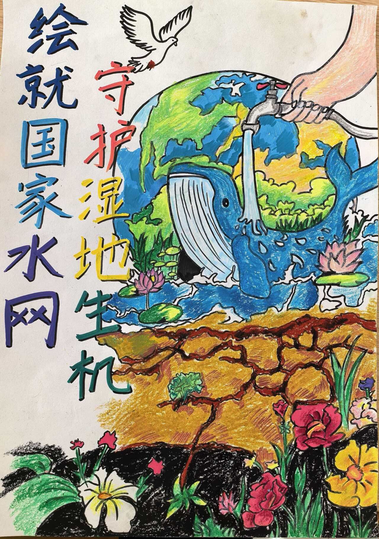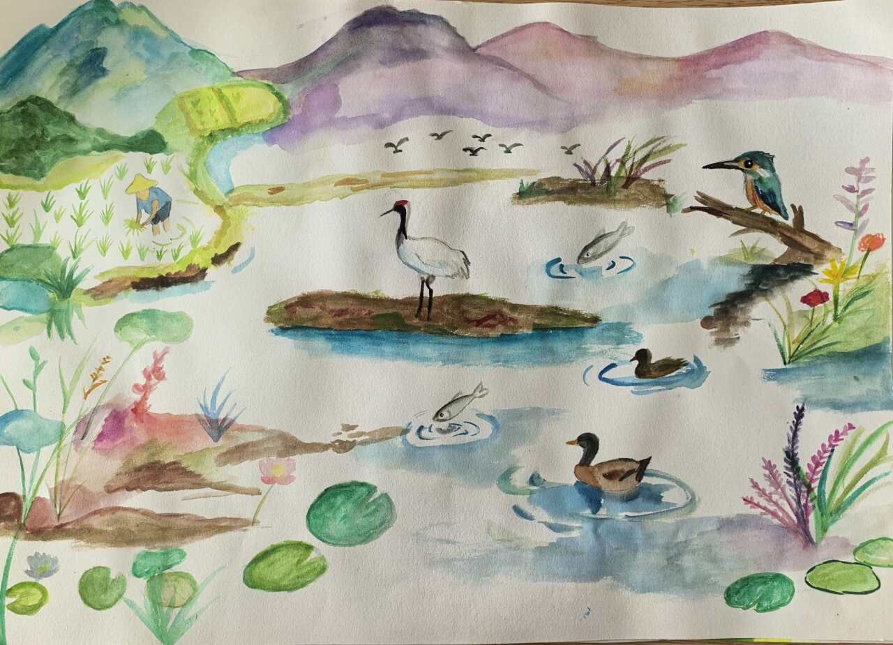 在2026年“世界水日”“中国水周”来临之际,为深入贯彻国家水网决策部署,展现湿地在国家水网布局中的重要作用,丰富校园文化生活,引导广大同学在艺术创作中感受生态之美,我校精心组织开展“绘就国家水网·守护湿地生机”主题绘画活动,号召同学们用画笔描绘国家水网蓝图与湿地生态之美。活动自启动以来,得到了同学们的热烈响应,共有289名学生积极参与,征集各类参赛作品182幅。参赛作品题材丰富、形式多样,涵盖国画、水彩、素描、油画等多种艺术形式,同学们以笔为媒,以墨为介,将宏大的国家水网建设与细腻的湿地生态保护完美融合。